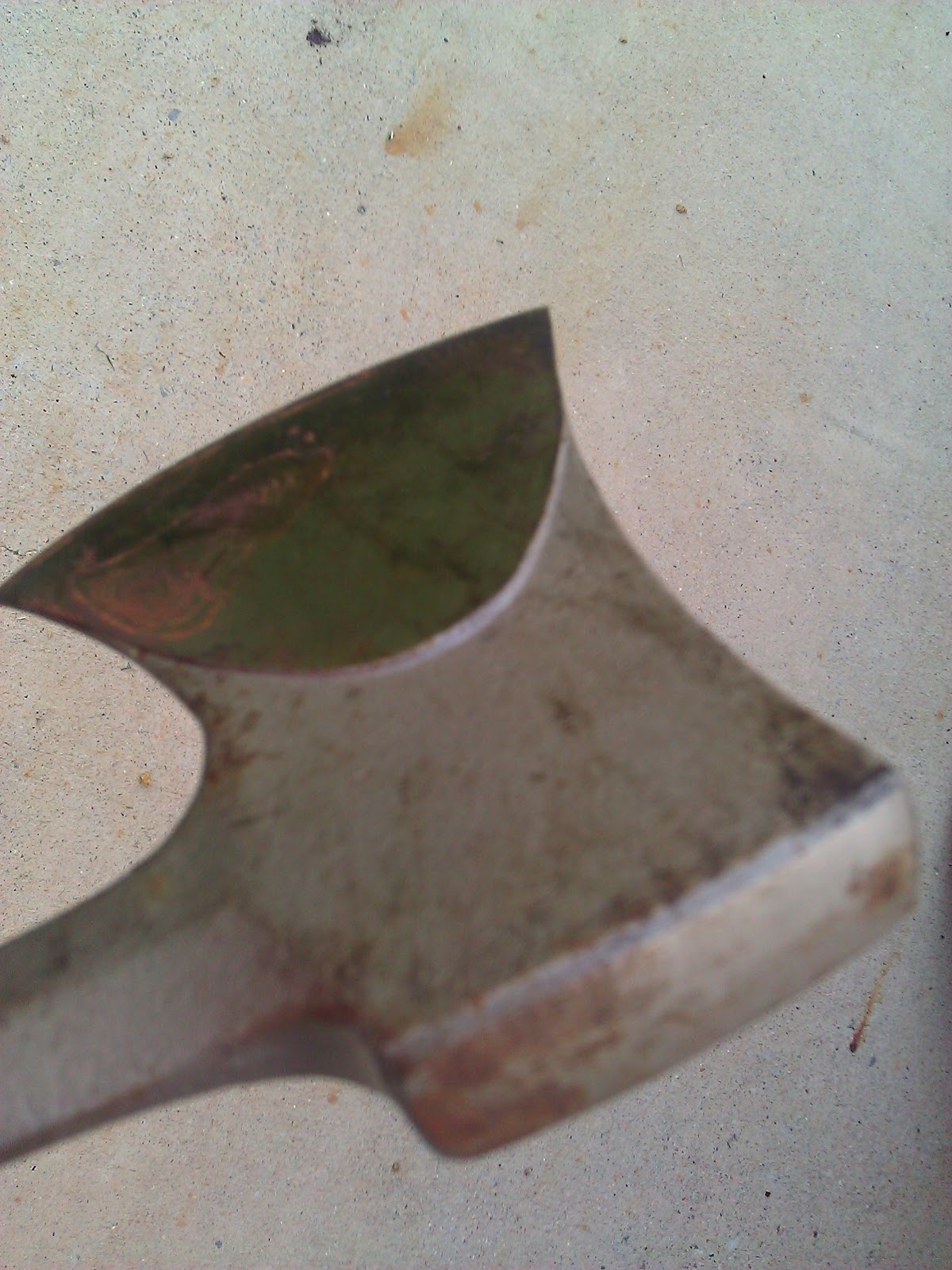 What a difference this hatchet is from the first one. First it has a slimmer head, higher carbon count, and it is a full one piece of metal with the kryton handle. I sharpen this guy once in every 3 to 5 times and it really doesn't need it that often unless I am really working it hard.